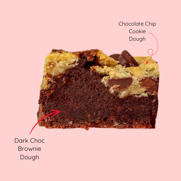 Entdecke die perfekte Kombi aus Brownie und Cookie mit unserer neuen Geschmackssorte "Brookie"! Dieser köstliche Leckerbissen vereint unseren schokoladigen Brownie mit riesigen Stücken aus Chocolate Chip Cookie. Mach keine Kompromisse - geniesse in einem Biss das Beste aus beiden Welten!